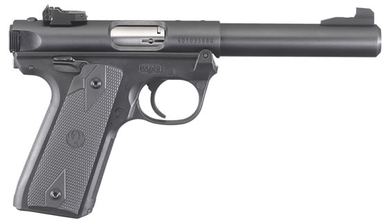 Ruger 40183, Mark IV, Target, Single Action, Semi-automatic, Metal Frame Pistol, Full Size, 22LR, 5.5" Barrel, Bull Barrel, Alloy, Blued Finish, Checkered Grips, Adjustable Rear Sight, 10 Rounds, 2 Magazines