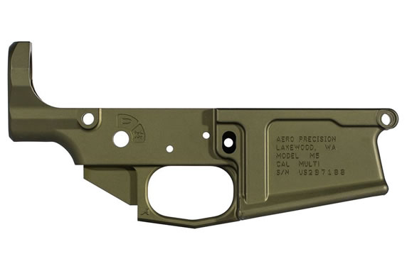 Aero Precision APAR600029C M4E1 Low Profile (no logo) Receiver Multi-Caliber OD Green Anodized Finish 7075-T6 Aluminum Material with Mil-Spec Dimensions for AR-15