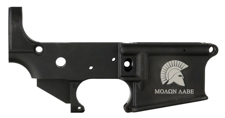 Anderson D2K067A005OP Receiver Multi-Caliber Black Anodized Finish 7075-T6 Aluminum Material with Mil-Spec Dimensions for AR-15, Open Trigger Guard, "Spartan Molon Labe" logo